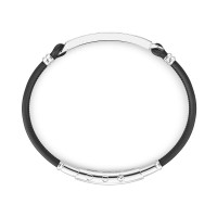 Natural leather bracelet, with 925 sterling silver central plaque. The bracelet's plaque picks up on the texture that characterizes the front grille of the Bugatti Chiron's mask and features the iconic Bugatti EB logo on the right side. The jewelry is completely handmade in Italy. The clasp is made of 316L steel with the possibility of adjustment in 3 sizes (19-19,5-20).