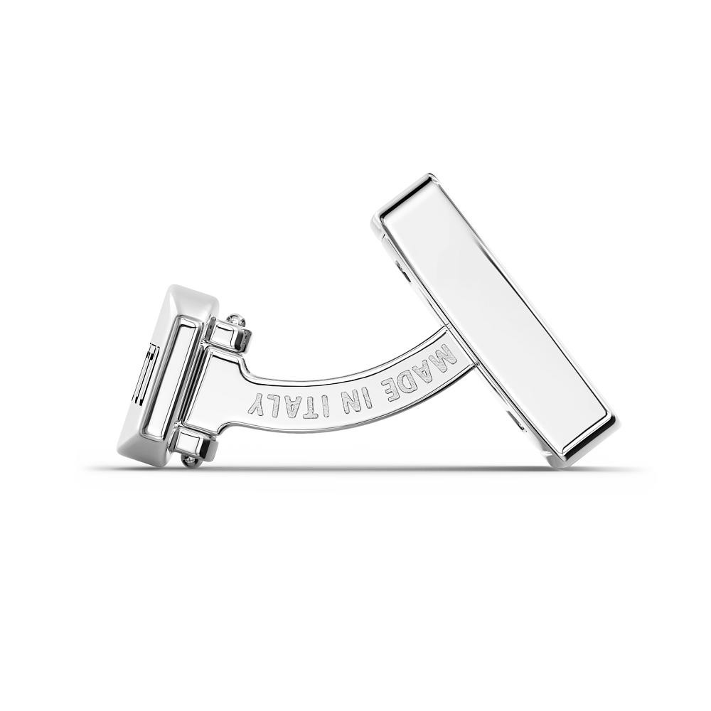 Sterling silver cufflinks. The cufflinks take up the texture that characterizes the front girille of the Bugatti Chiron's mask and feature the iconic Bugatti EB logo on the lower right side. The jewel is completely handmade in Italy.