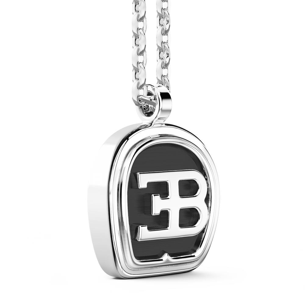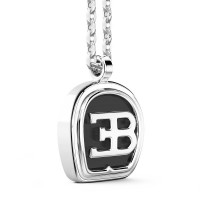 Sterling silver necklace. The pendant is inspired to the frontal mask of the Bugatti Chiron, where it features the iconic Bugatti EB logo on a black background. The jewel is completely handmade in Italy.