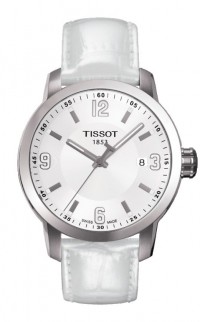 Men's Swiss Luxury quartz movement wrist watch from the Sport Collection. Featuring a round stainless steel case, with a white dial with Arabic & index numerals, scratch resistant sapphire crystal glass, and a white leather strap with a butterfly clasp. Functions include: Date. Water Resistance: 200m/660ft/20bar w/screw down crown. 2 Year Limited Warranty.